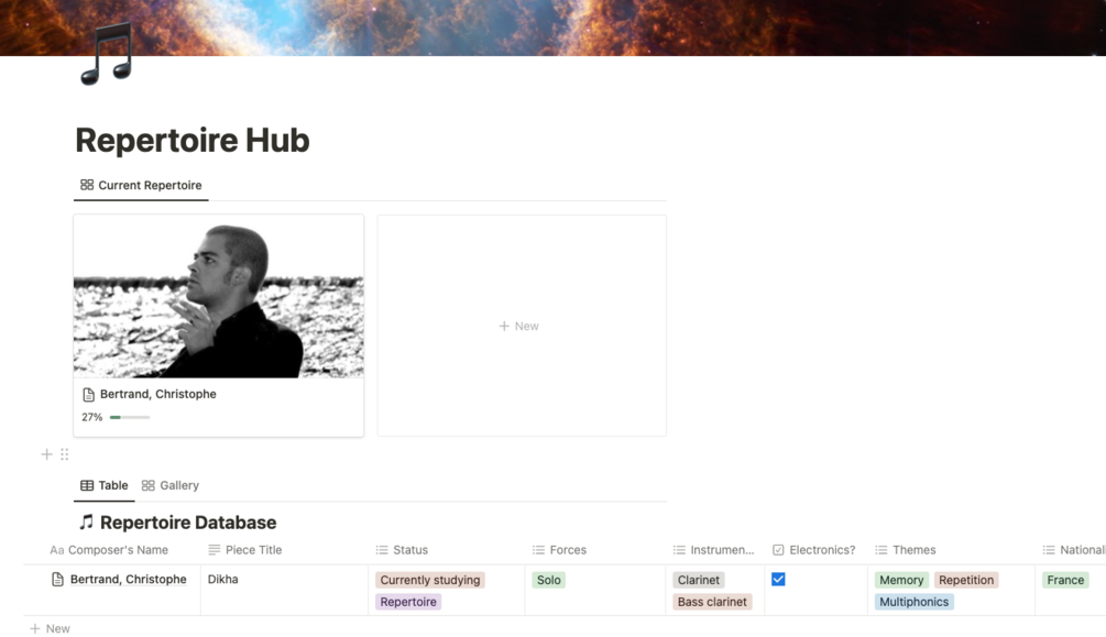 - Select the status: is this a piece you're dying to learn? Select 'wishlist'. If it's something you're working on now? Select 'currently studying' - then it'll appear above the database itself.